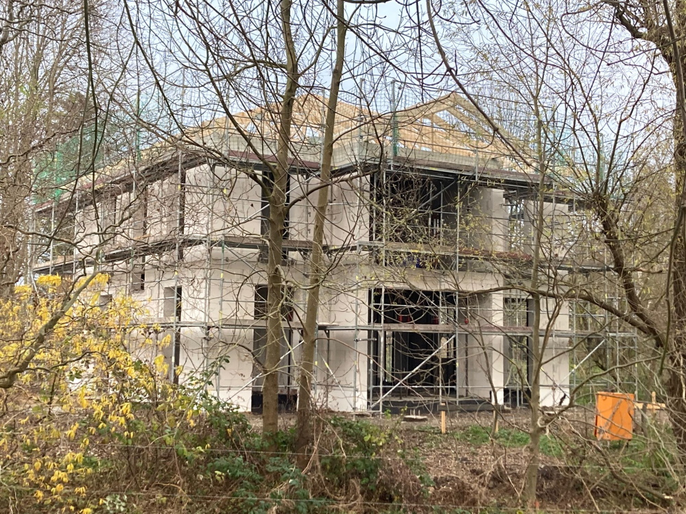 Fertigstellung Hochbau + Richten des Dachstuhls in Halle, Nauen und Coswig