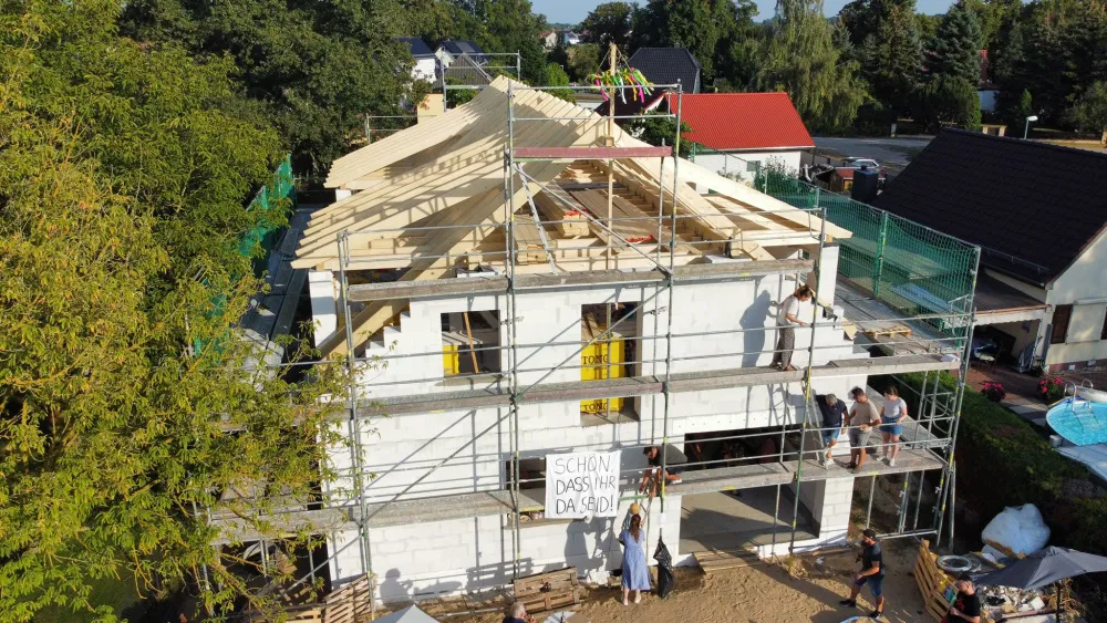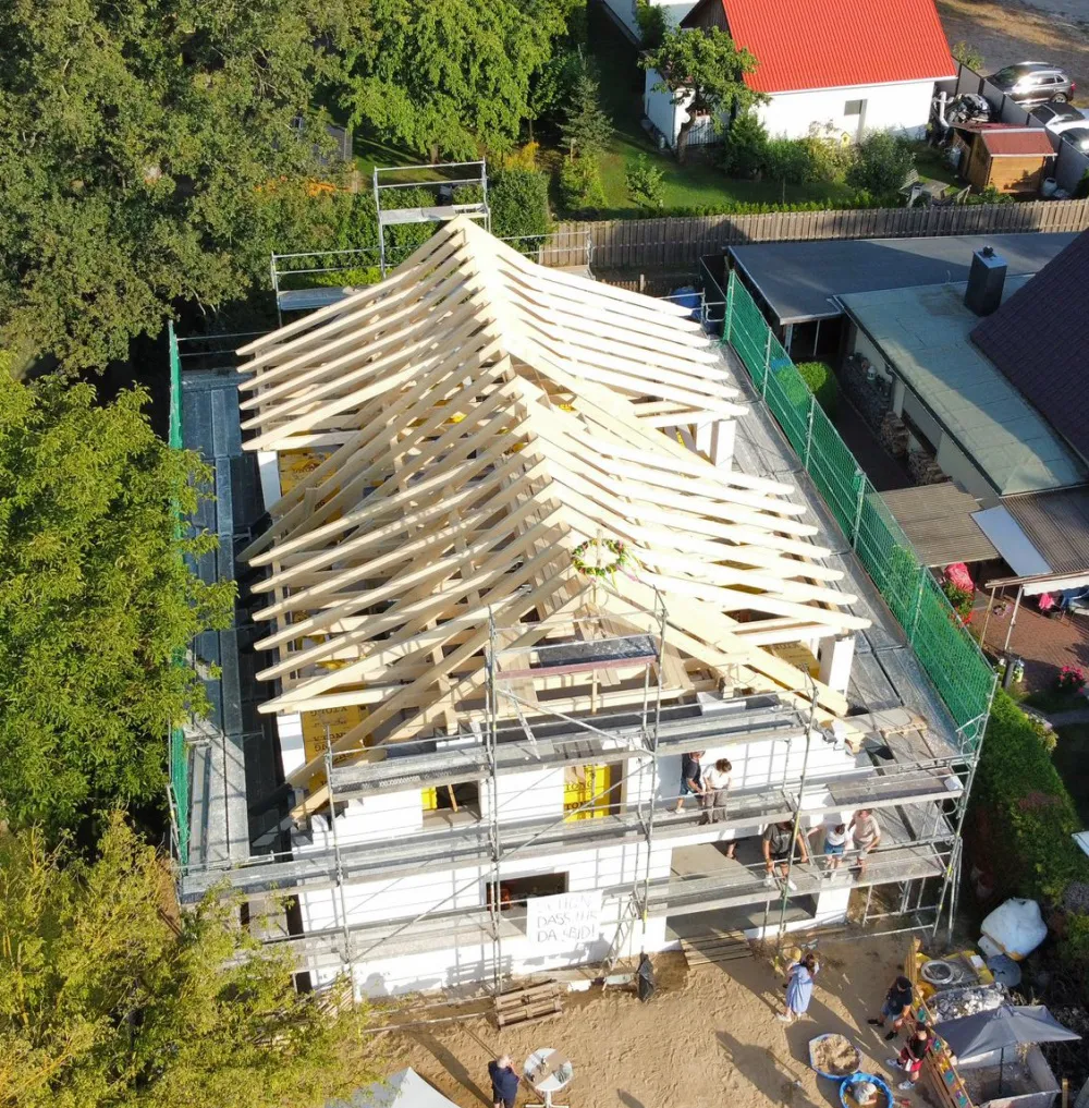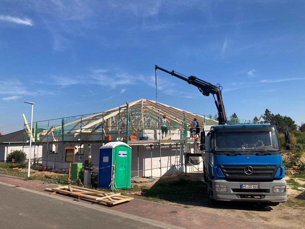 Fertigstellung Rohbau / Richten der Dachstühle in Gräfenhainichen und in Schönwalde-Glien